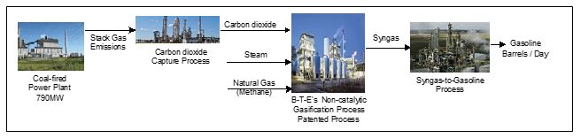Example B: B-T-E’s CO2 Opportunity, Patented CO2 Conversion "Non-catalytic" Technology; Converting CO2 Emissions from Coal-fired Power Plants to Gasoline